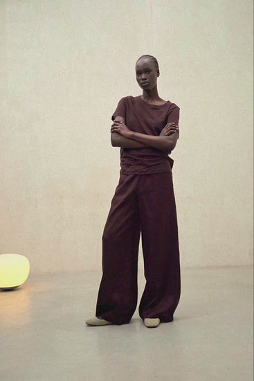 Das T-Shirt Lane besteht aus einem Hauptgewebe aus 100 % Leinen. Normaler Schnitt. Es hat einen Rundhalsausschnitt und kurze Ärmel.