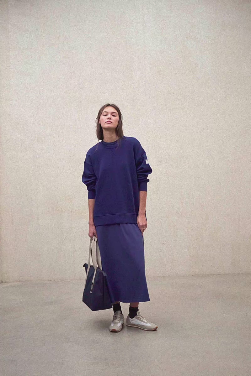Das Sweatshirt Storm besteht aus einem Hauptgewebe aus 50 % recycelter Baumwolle. Puff-Aufdruck auf der Rückseite. Gerippter Kragen, Saum und Ärmelbündchen.