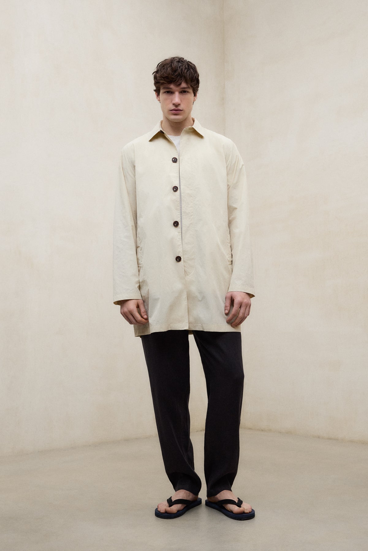 Die Jacke Vestal besteht aus einem Hauptgewebe aus 100 % recyceltem Polyamid. Normaler Schnitt. Beinlänge oberhalb des Knies. Sie hat Taschen an der unteren, vorderen Seite sowie eine Innentasche mit Klettverschluss. Mittlere Klappe mit Knöpfen.