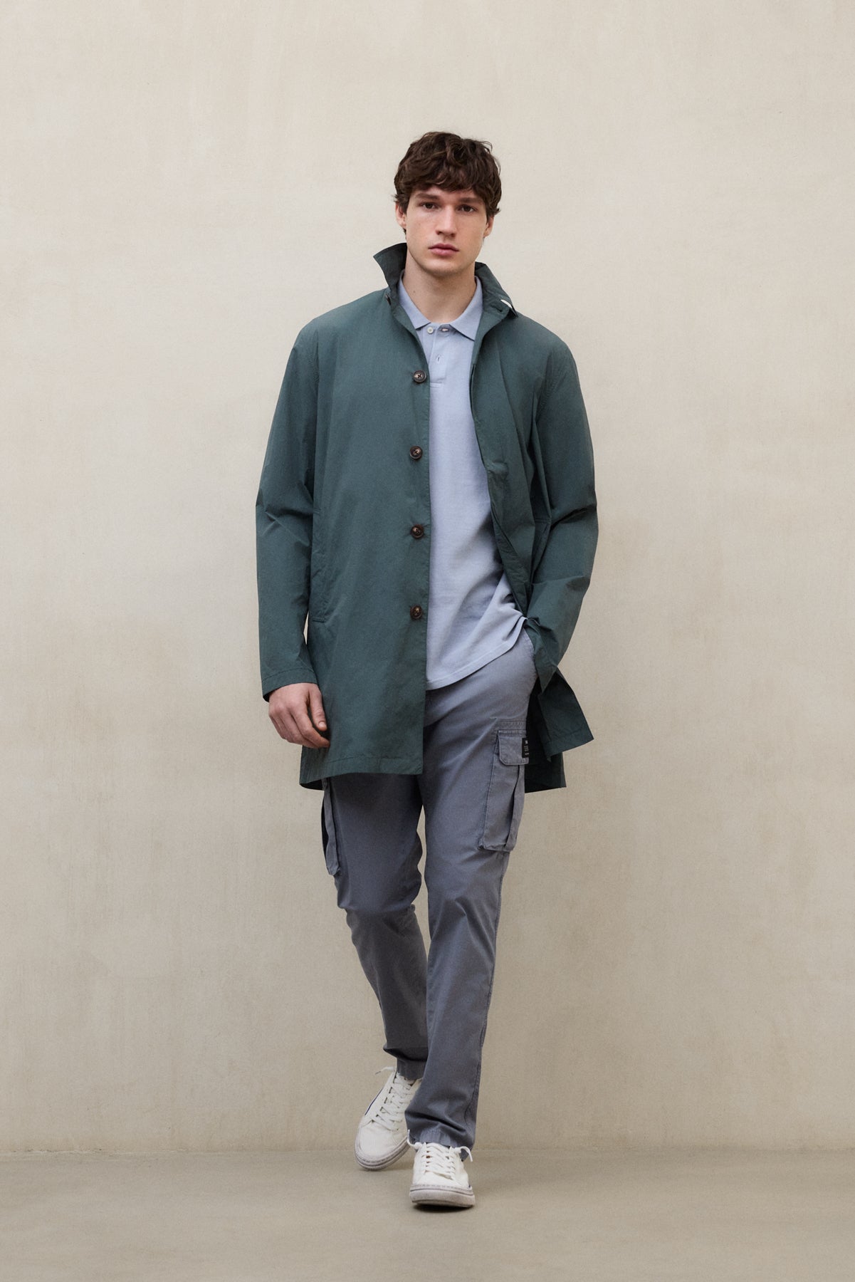 Die Jacke Vestal besteht aus einem Hauptgewebe aus 100 % recyceltem Polyamid. Normaler Schnitt. Beinlänge oberhalb des Knies. Sie hat Taschen an der unteren, vorderen Seite sowie eine Innentasche mit Klettverschluss. Mittlere Klappe mit Knöpfen.
