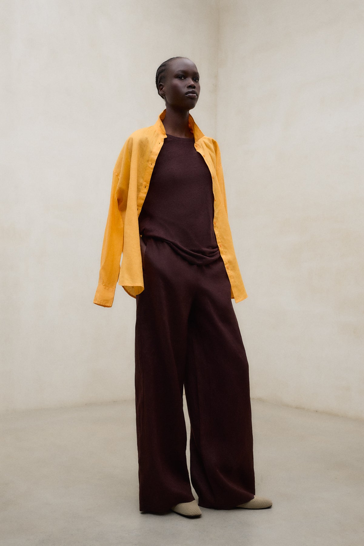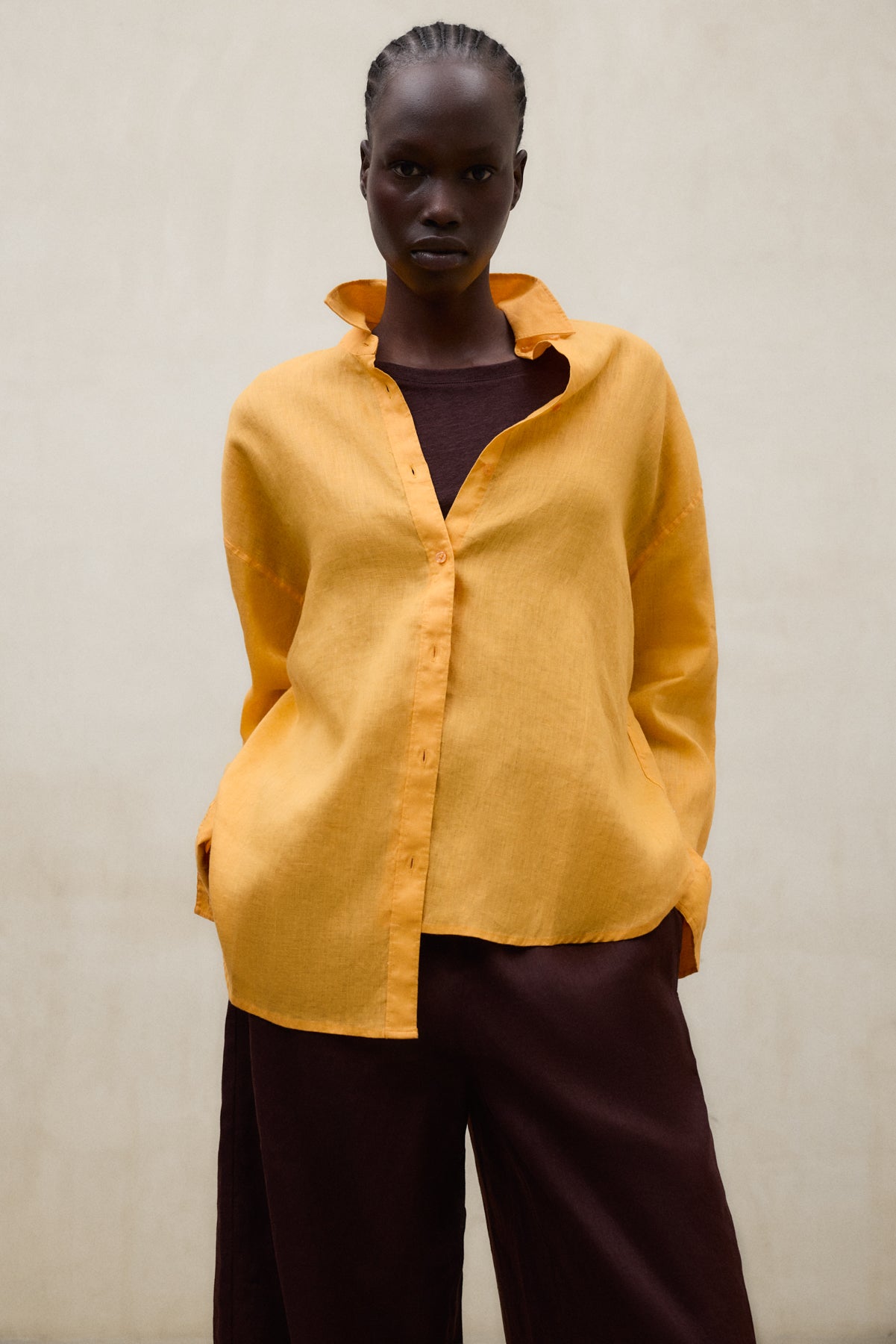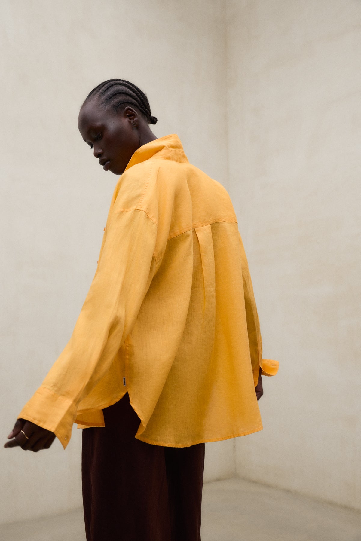 The Daria Shirt is made of 80% linen. Oversized fit. Button-down front.