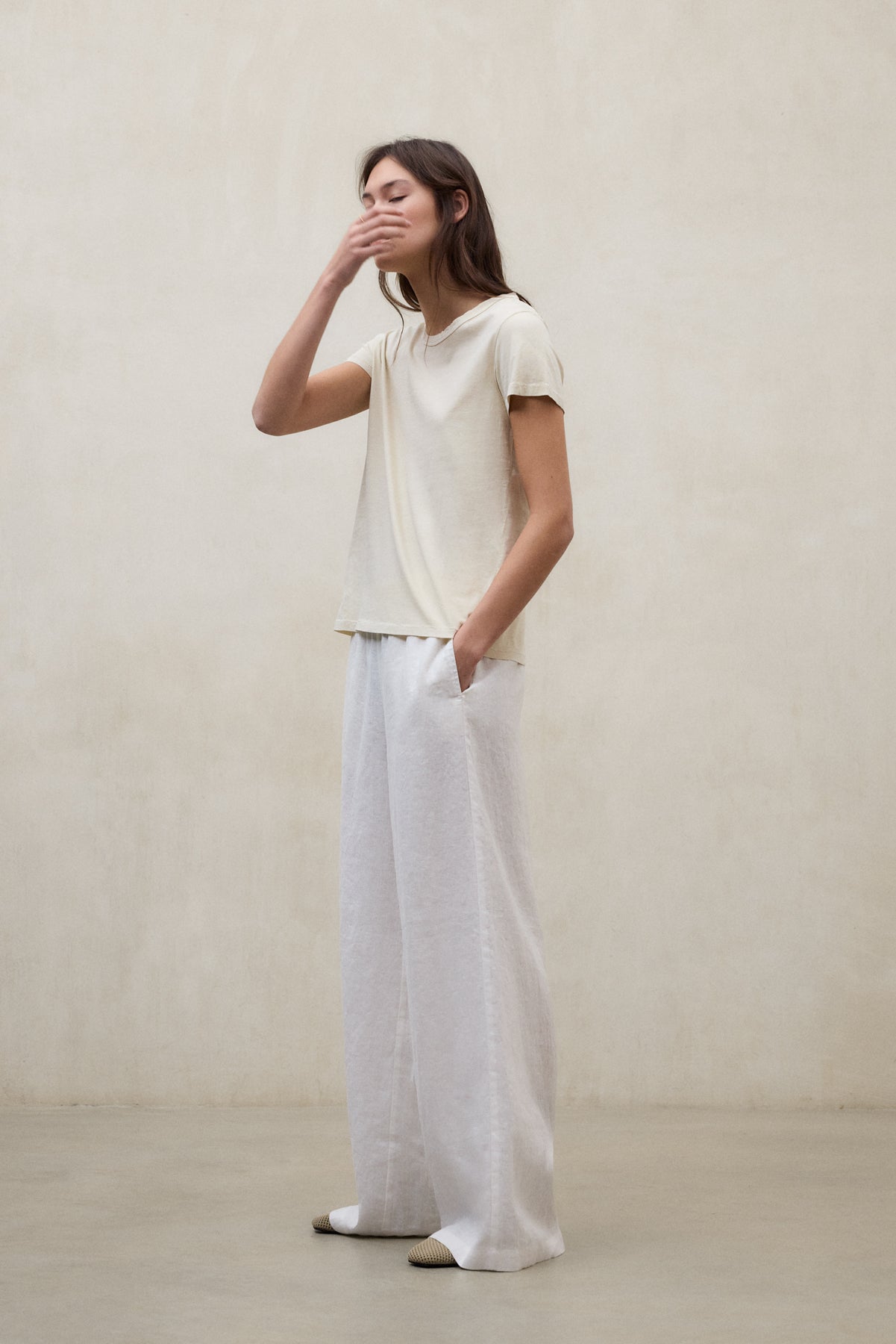 The Mossi Trousers are made of 80% linen. Relaxed fit. Pockets inserted at the side seams, elasticated waistband and wide leg.