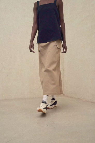 The Joy Skirt is made of 61% organic cotton. It has a concealed zip at the back. A-line shape. Patch pockets.