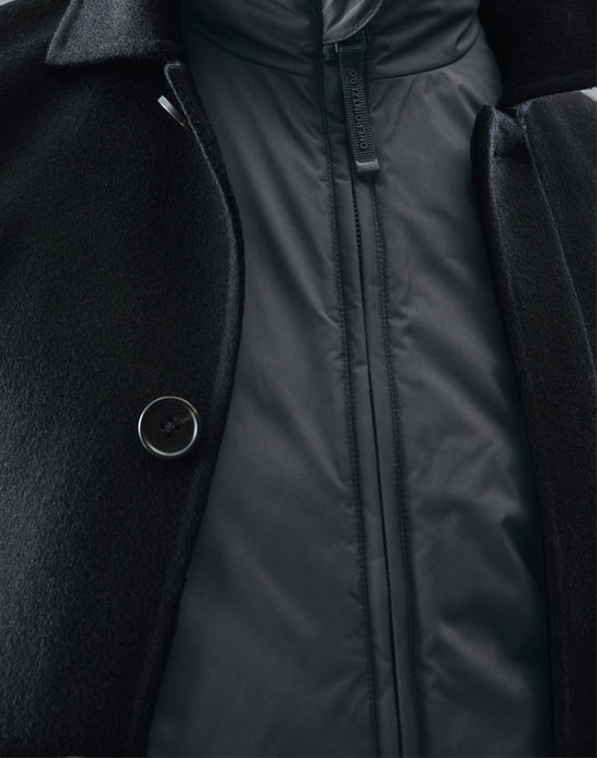 Quita los botones de la capa de poliéster sintético y de la capa de lana natural cortando el hilo que los une al abrigo. Son biodegradables.