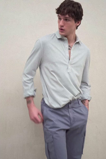 La Camisa Will está fabricada con un tejido principal de 100% Algodón reciclado. Fit regular. Cuello italiano, tapeta frontal central de medio largo con botones.
