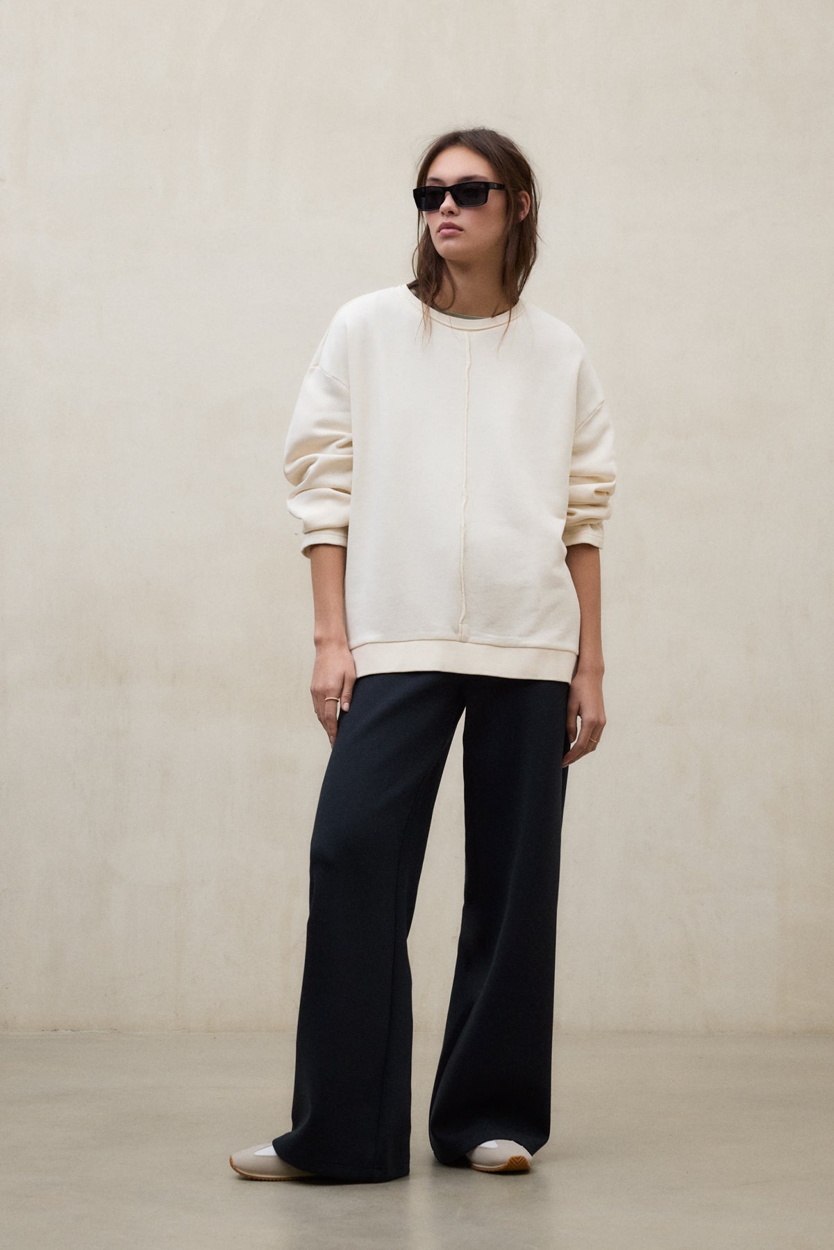 La Sudadera Ankara está fabricada con un tejido principal de 100% Algodón reciclado. Fit oversize. Cuello redondo y hombros caídos. Costura central frontal. Prenda teñida con pigmento.