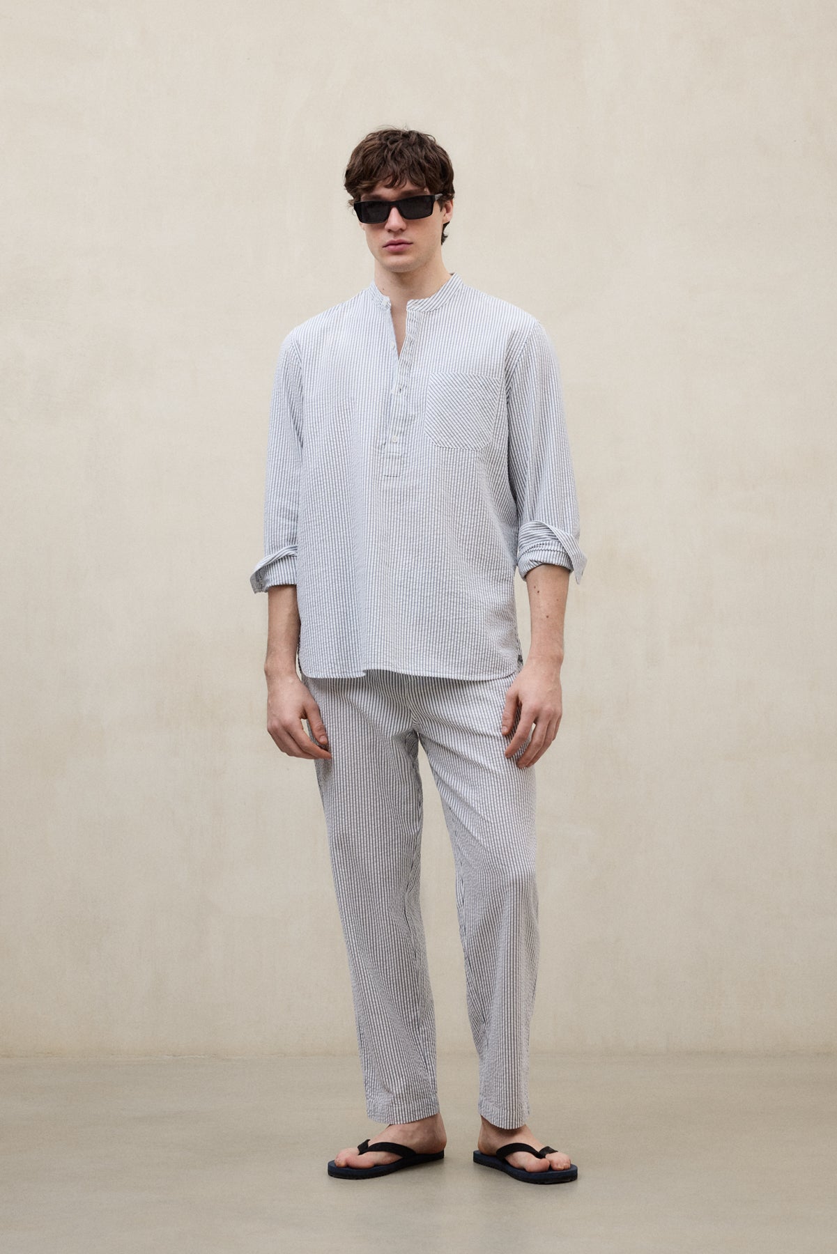 Los Pantalones Feire están fabricados con un tejido principal de 70% Algodón orgánico. Fit relajado. Tiro medio. Bolsillos laterales y trasero, bragueta con cremallera y cintura elástica con pasadores para cinturón.