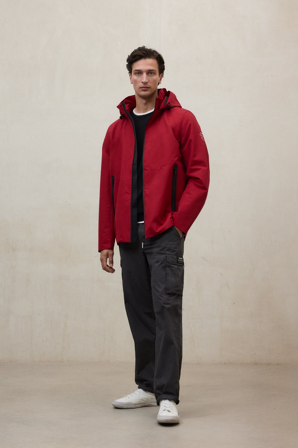 - Capucha ajustable con cordones elásticos y topes personalizados