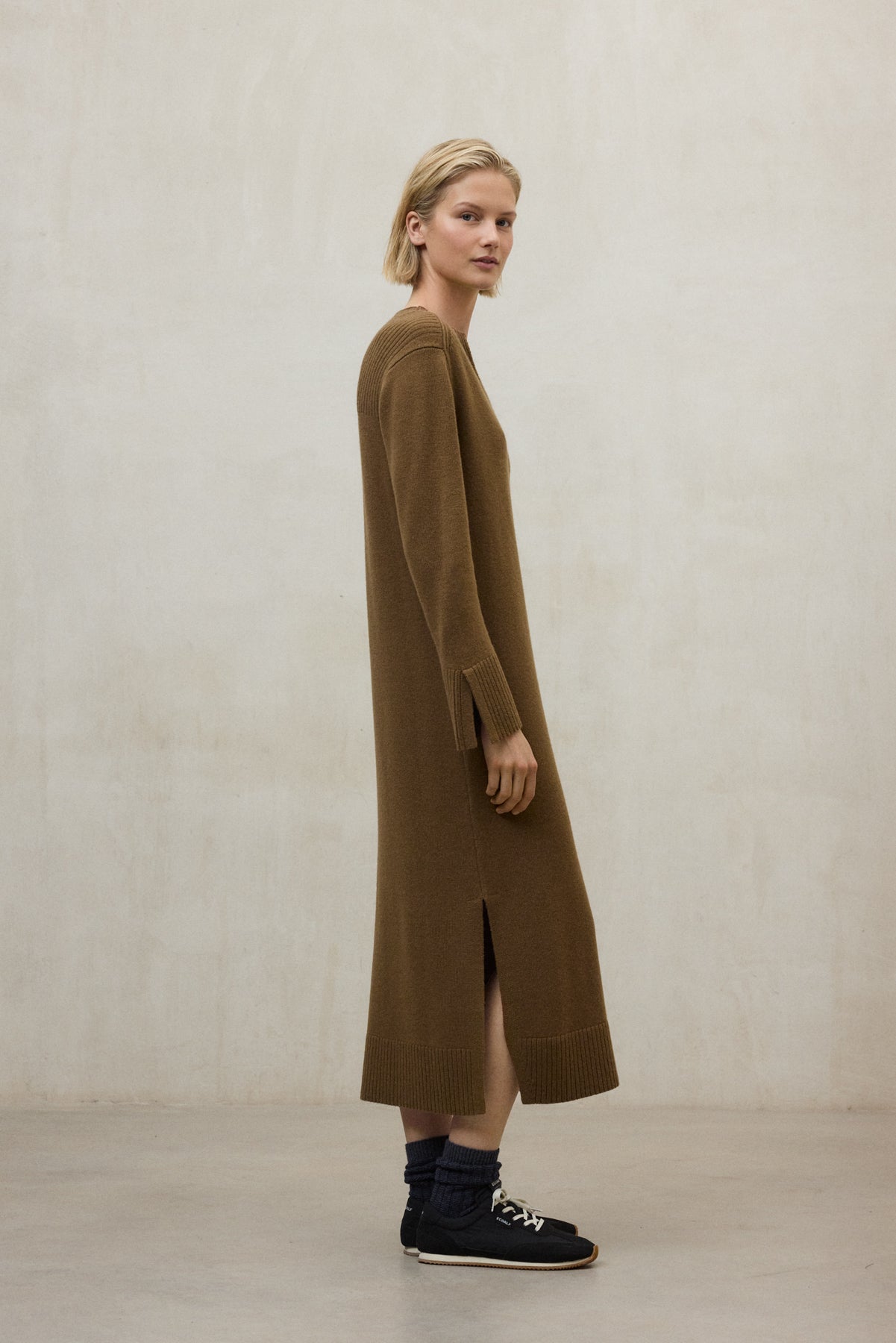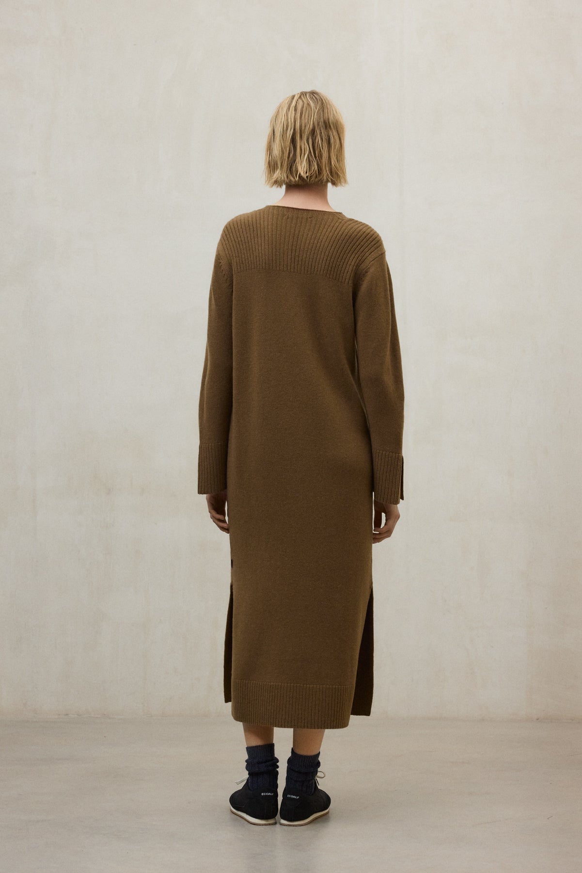L’abito Rubi è realizzato al 100% in lana riciclata. L'utilizzo di lana riciclata al posto della lana vergine contribuisce a ridurre gli sprechi, a risparmiare risorse come acqua e suolo e a ridurre le emissioni e i potenziali scarichi idrici, in linea con i principi dell'economia circolare.