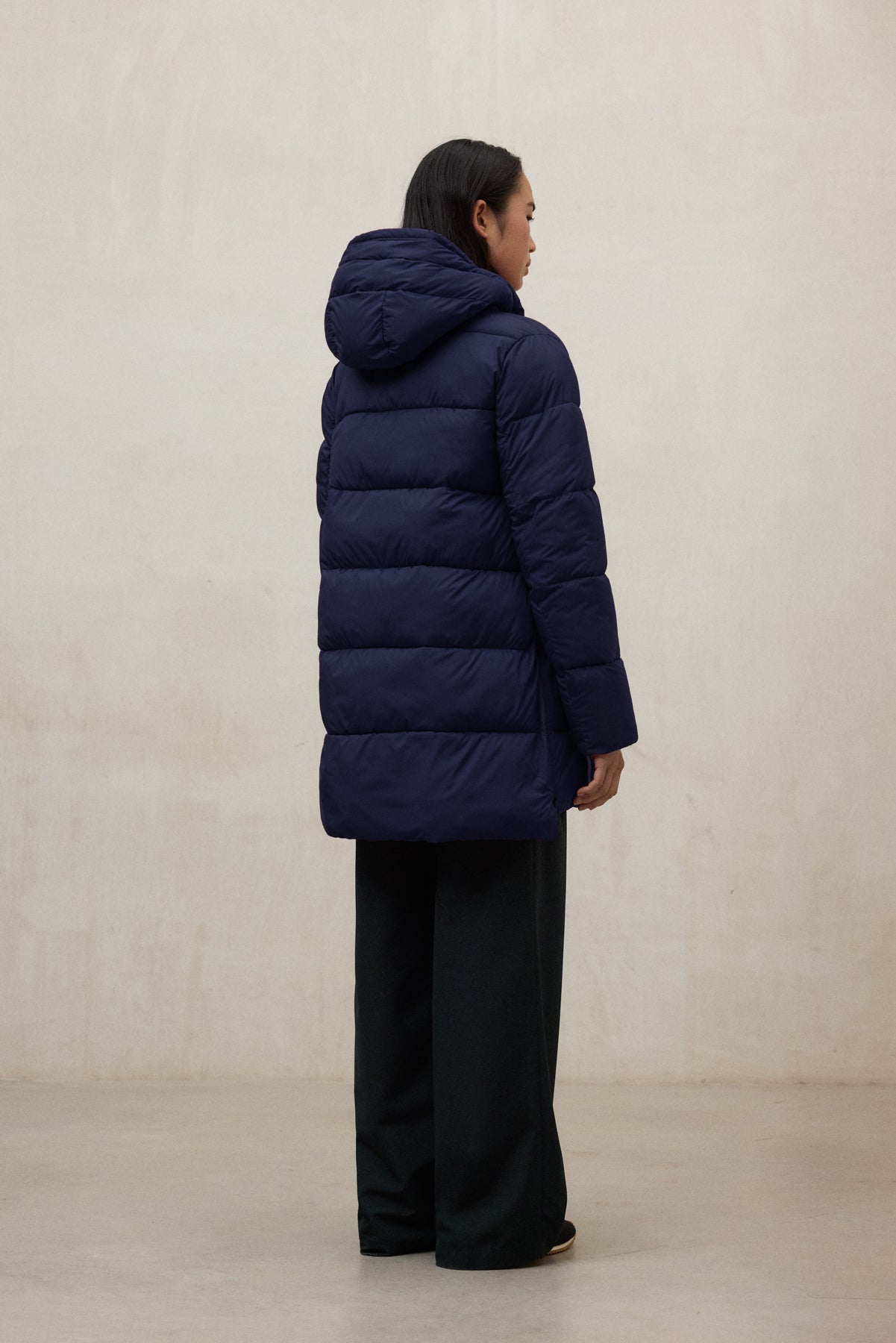 El abrigo Marangu está confeccionado con tejido principal 86% Poliéster reciclado, 14% Elastano. Forro 100% Poliéster reciclado y relleno 100% Poliéster reciclado. El poliéster reciclado reduce el uso de recursos fósiles, emisiones de CO2 y consumo de agua y energía, al reutilizar residuos plásticos como botellas PET, manteniendo las propiedades del poliéster virgen.